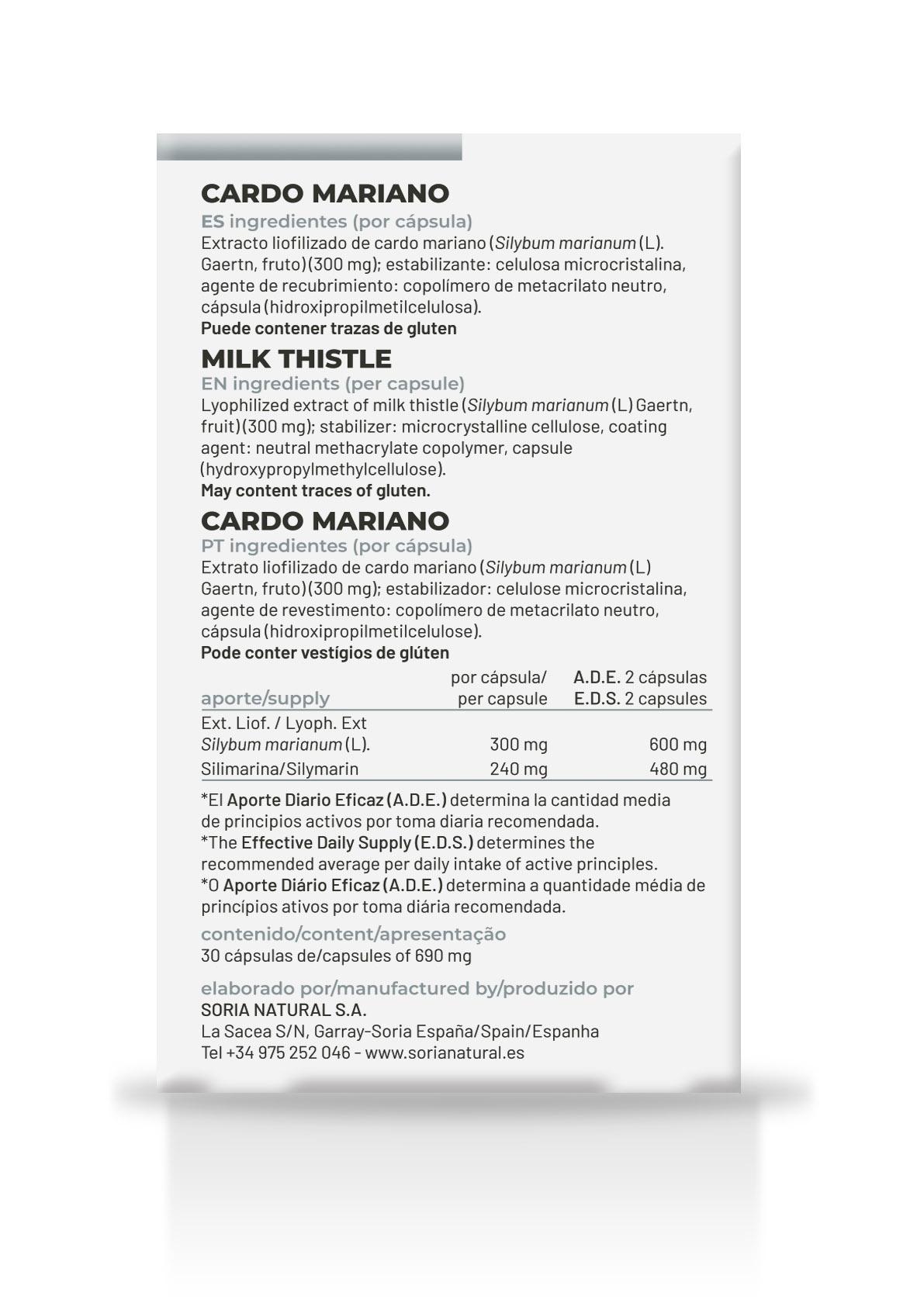 Per capsule: Lyophilized extract of milk thistle (Silybum marianum