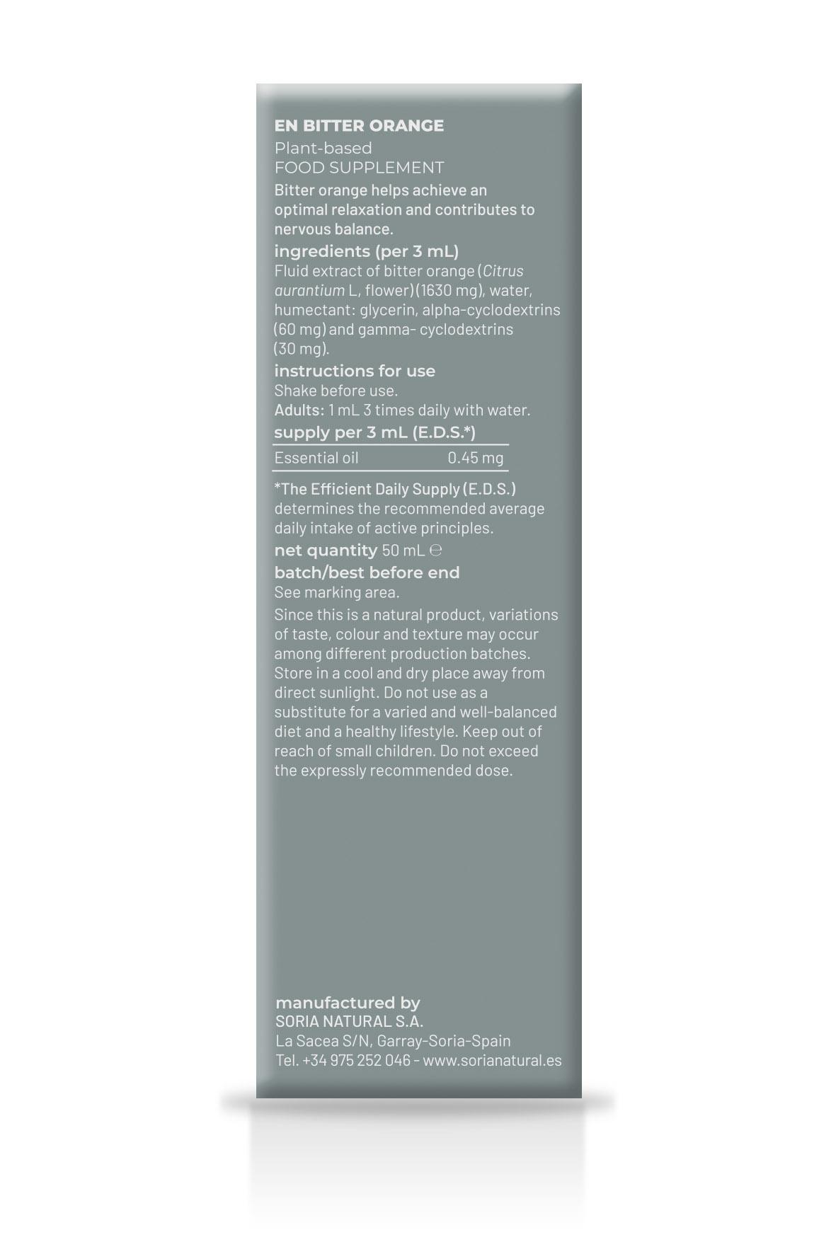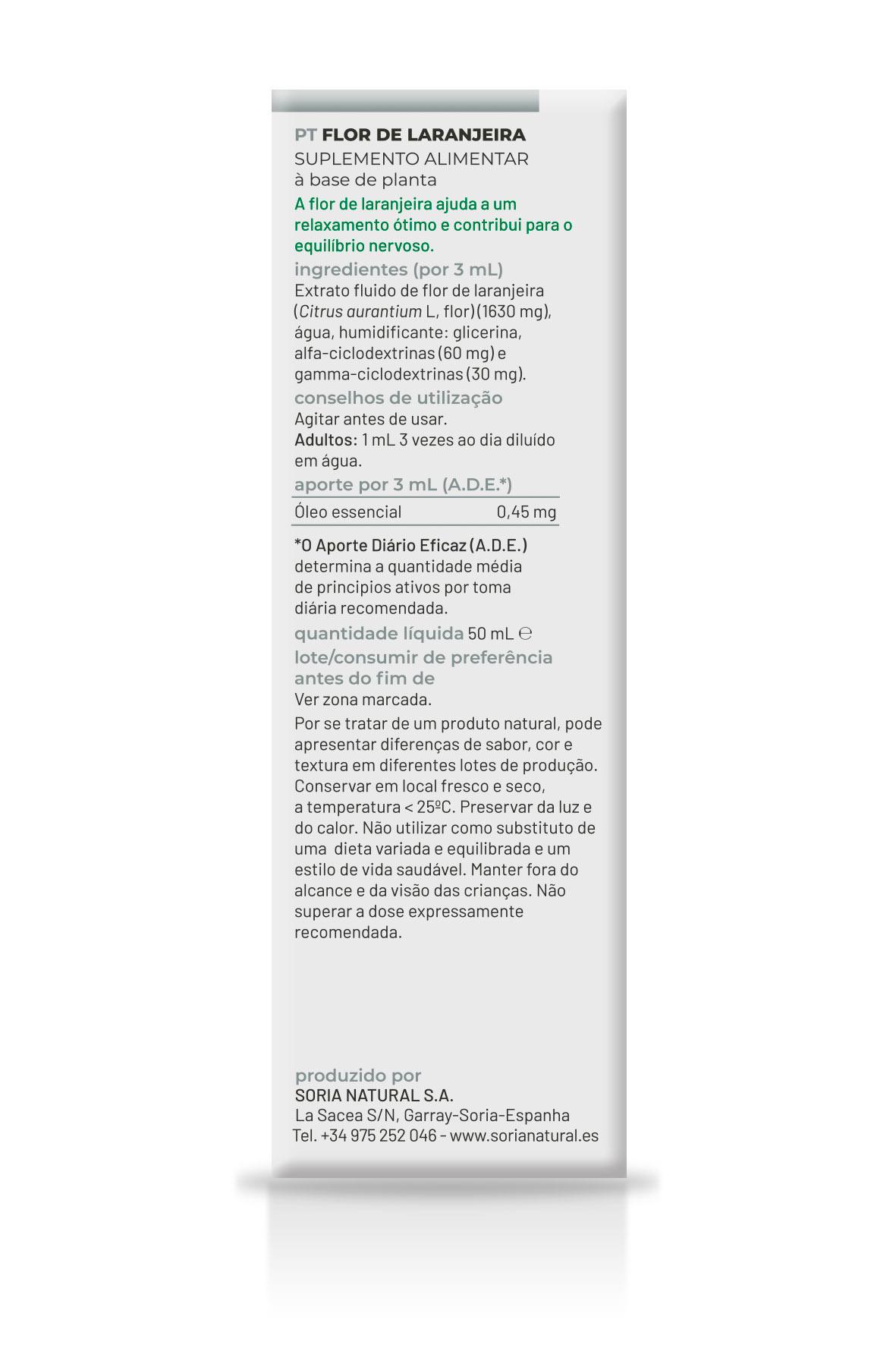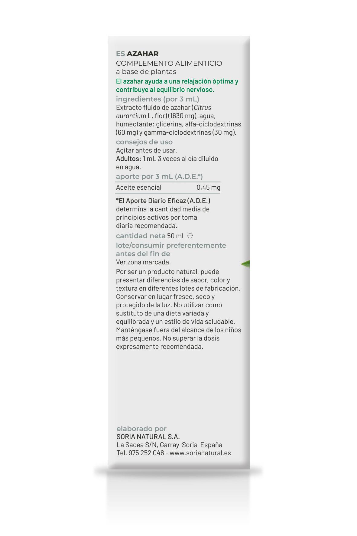 Por 3 ml: Extracto fluido de azahar (Citrus aurantium L, flor) (1630 mg), agua, humectante: glicerina, alfa-ciclodextrinas (60 mg) y gamma-ciclodextrinas (30 mg).