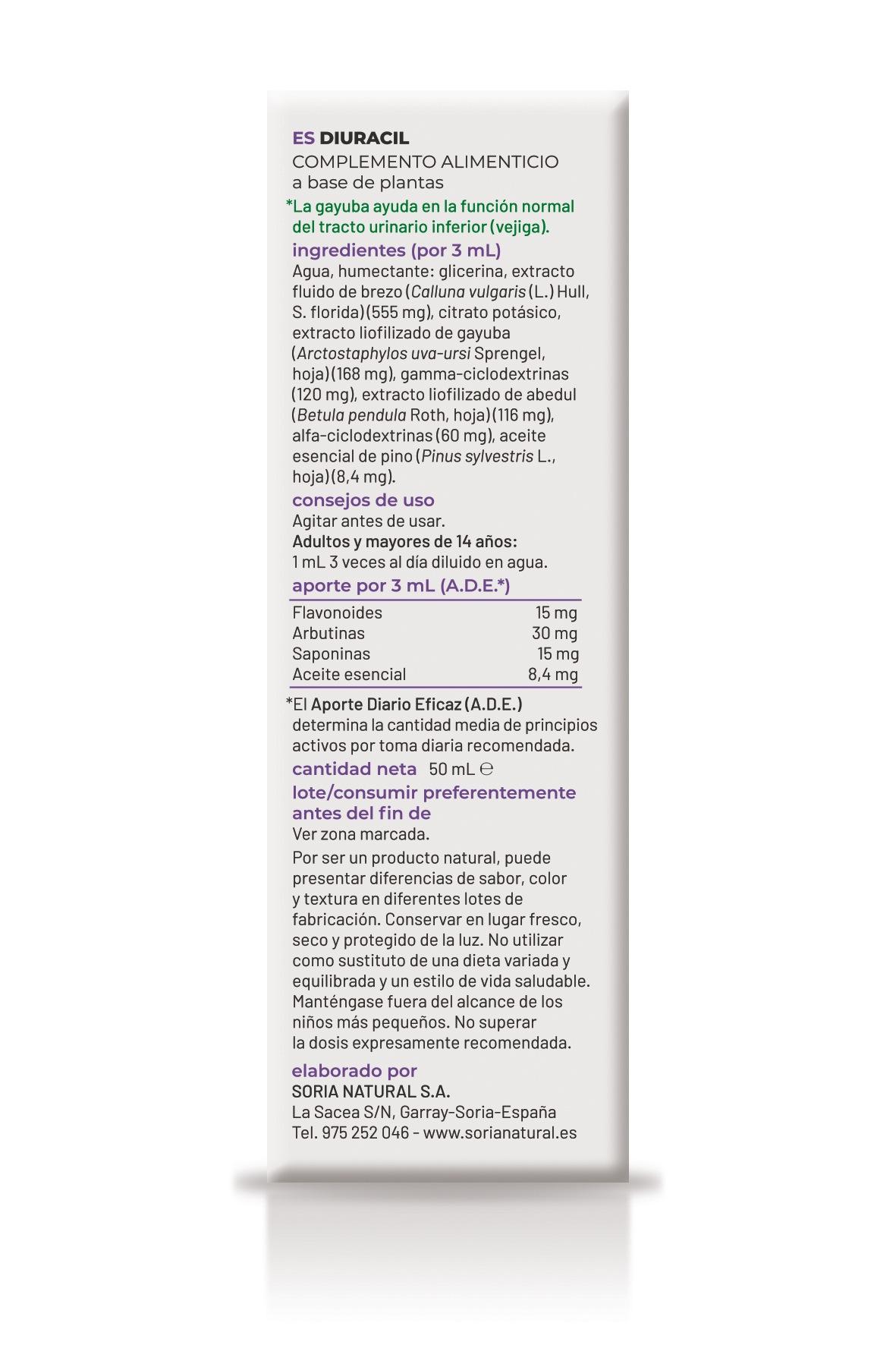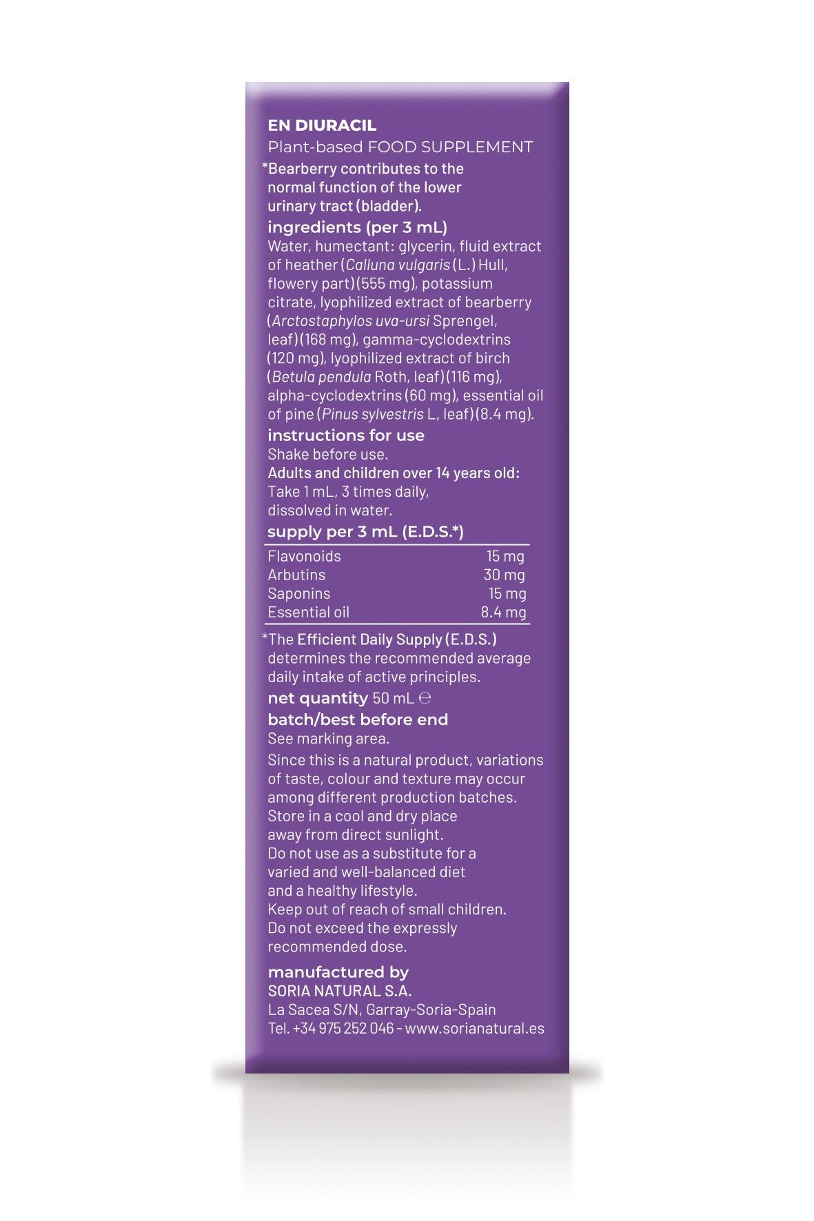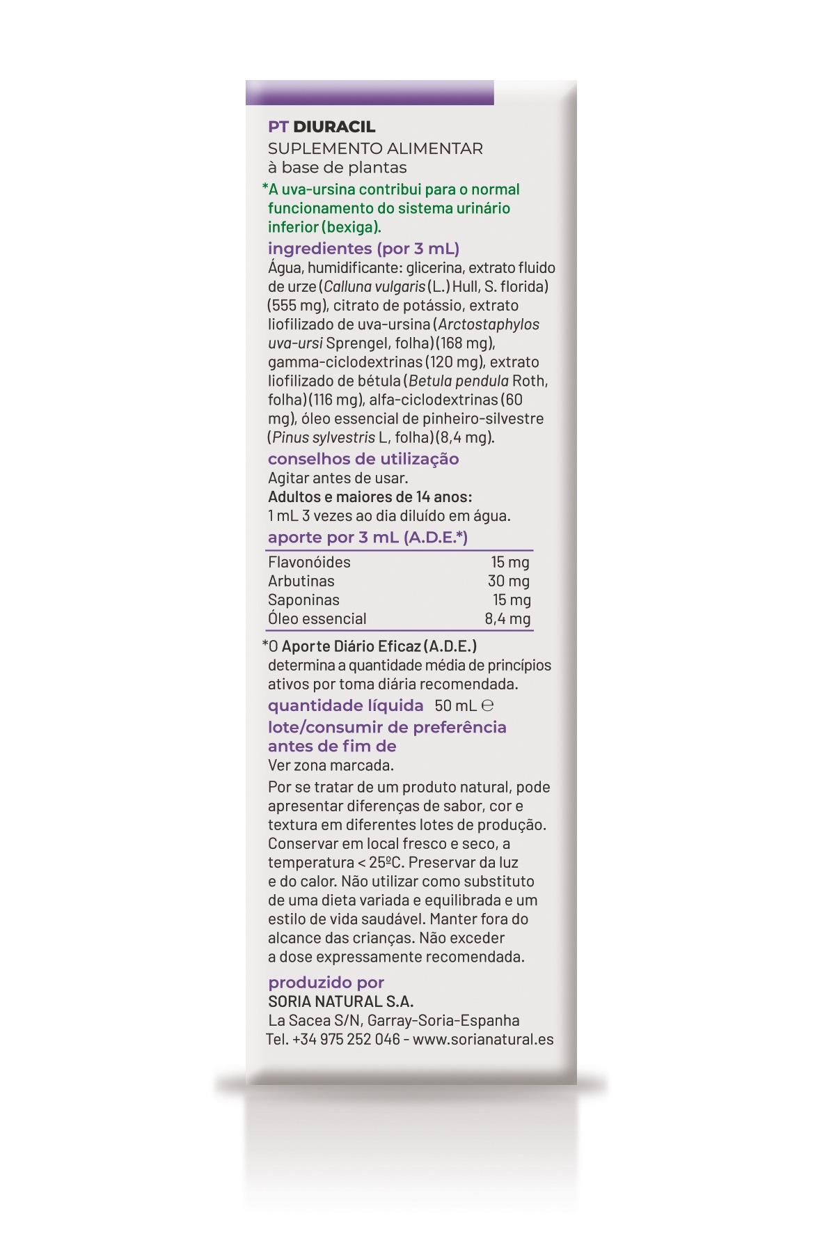 (por 3 mL) Água, hidratante: glicerina, extrato fluido de Urze (Calluna vulgaris L., s. florida) (555 mg), citrato de potássio, extrato liofilizado de Uva Ursina (Arctostaphylos uva-ursi Sprengel, folha) (168 mg), gamma-ciclodextrinas (120 mg), extrato liofilizado de Bétula (Betula pendula Roth, folha) (116 mg), alfa-ciclodextrinas (60 mg), óleo essencial de Pinheiro (Pinus sylvestris L., folha) (8,4 mg).