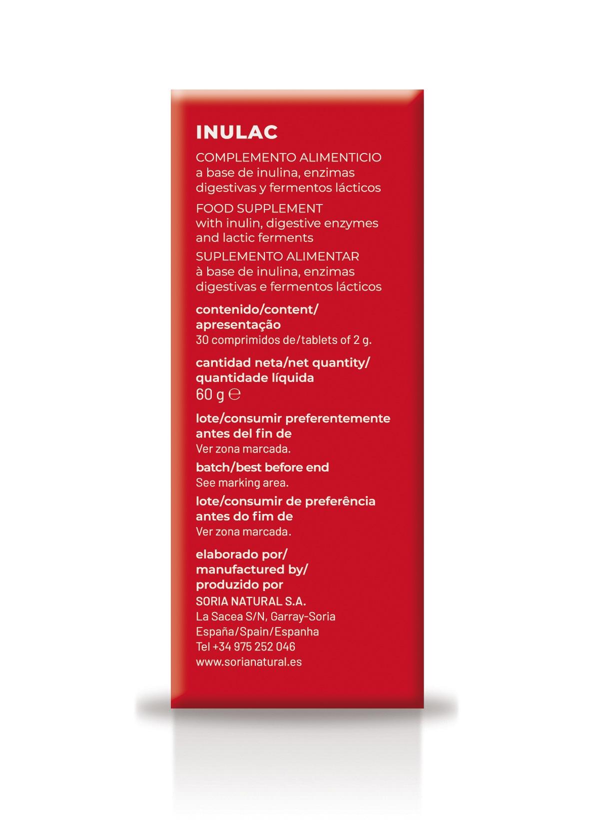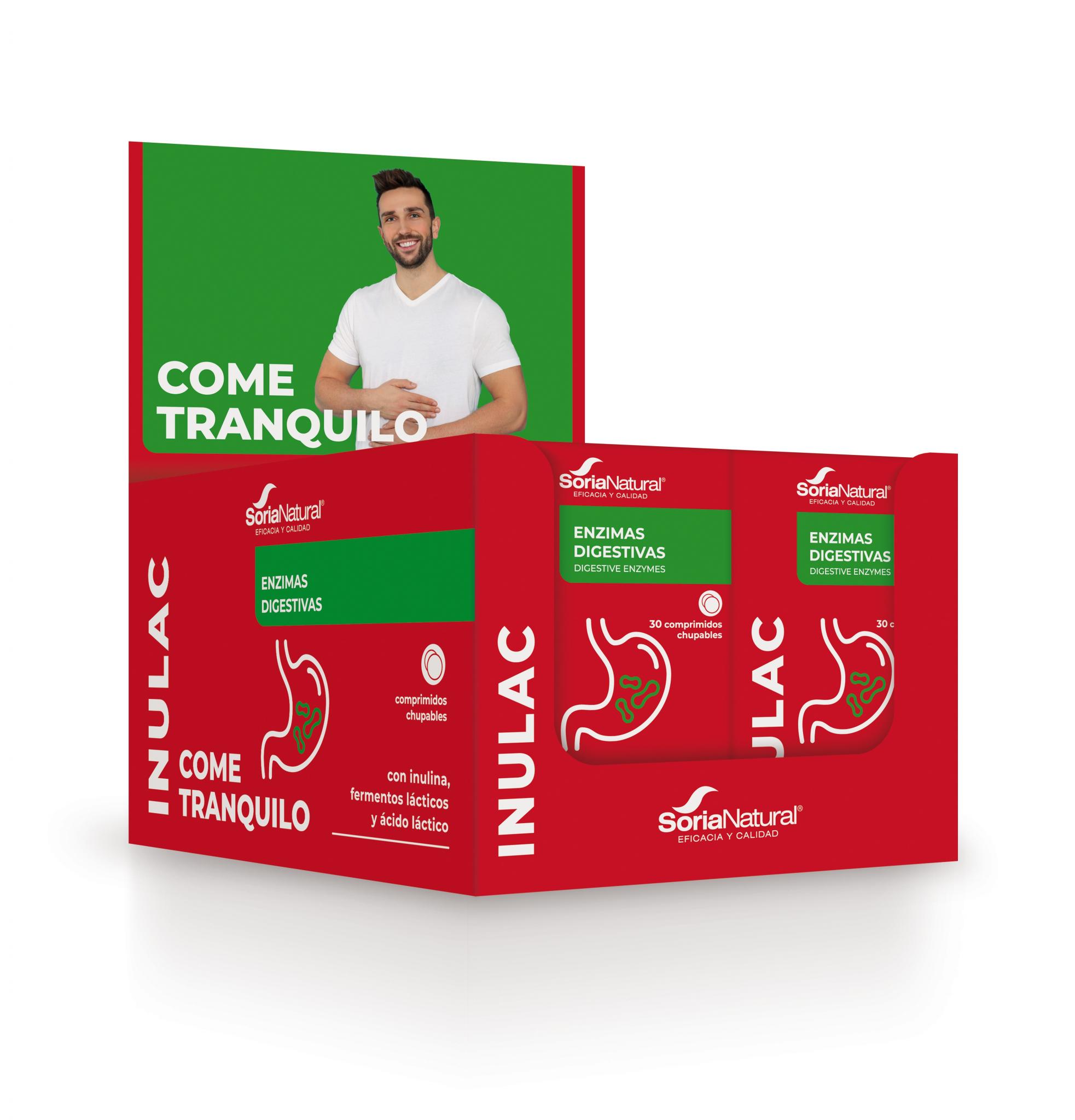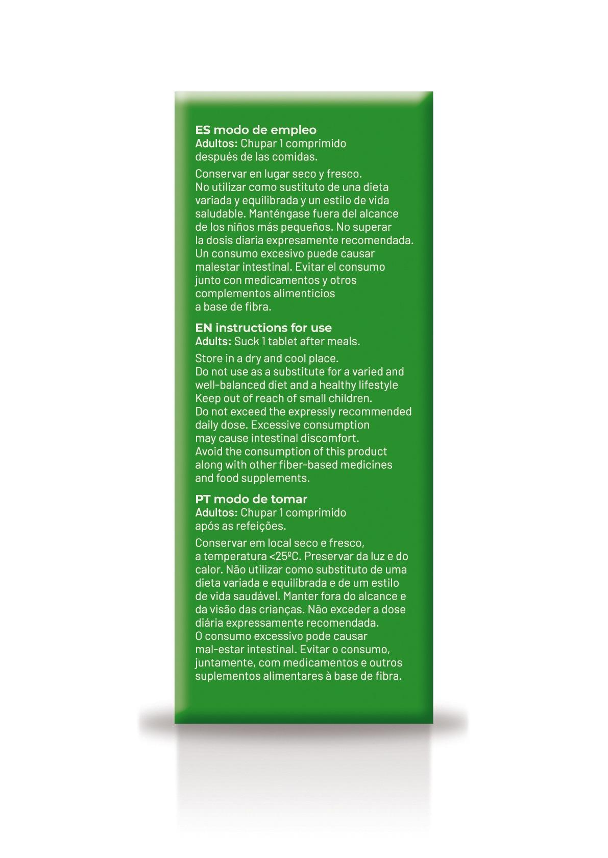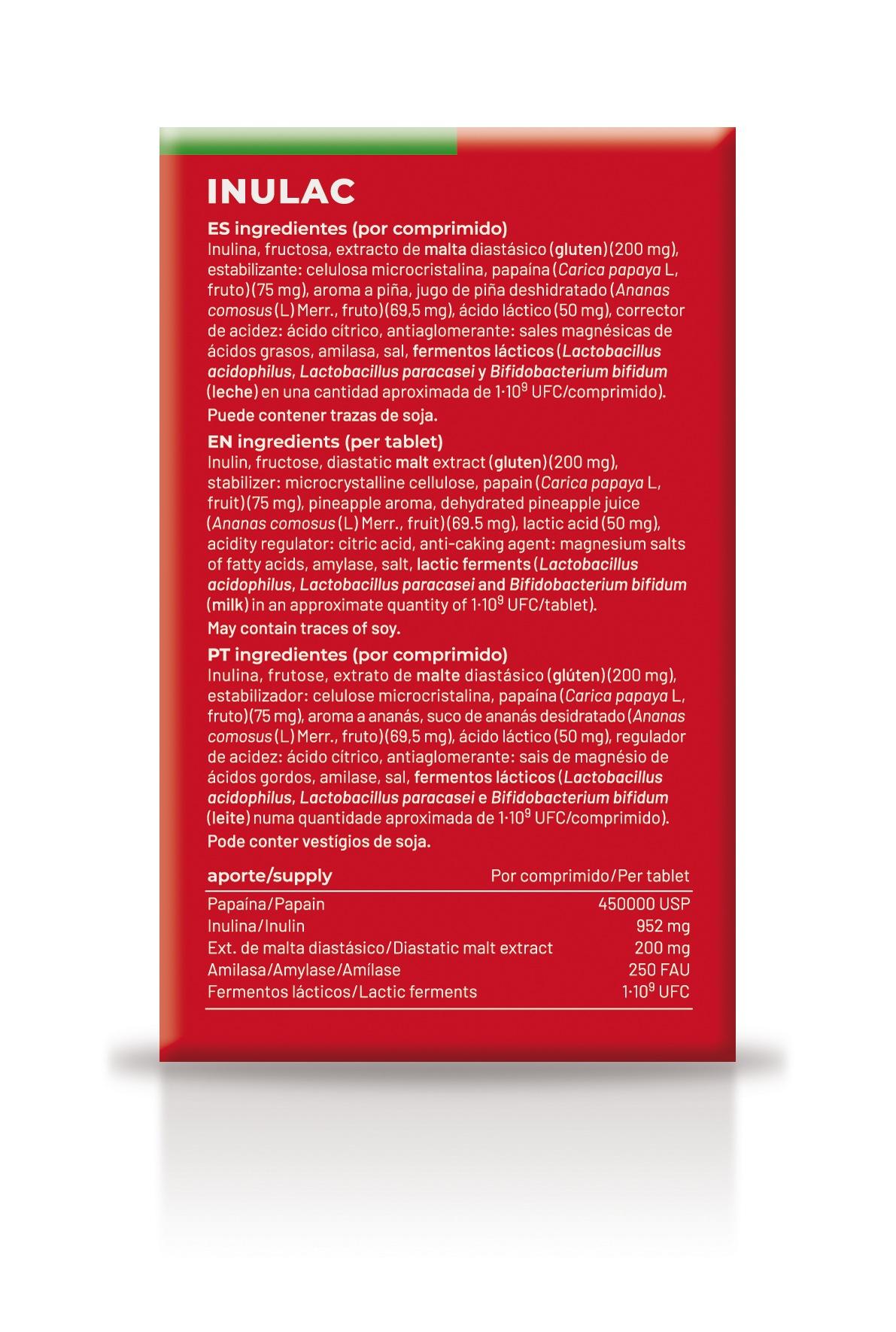 Por comprimido: Inulina, frutose, extrato de malte diastático (200 mg), estabilizante: celulose microcristalina, papaína (75 mg), aroma a ananás, suco de ananás desidratado (Ananas comosus L., fruto) (69,5 mg), ácido láctico (50 mg), corretor de acidez: ácido cítrico, antiaglomerante: sais magnésicos de ác gordos, amílase, sal, fermentos lácticos (Lactobacillus acidophilus, Lactobacillus paracasei y Bifidobacterium bifidum num quantidade aproximada de 1.109 UFC/comprimido).