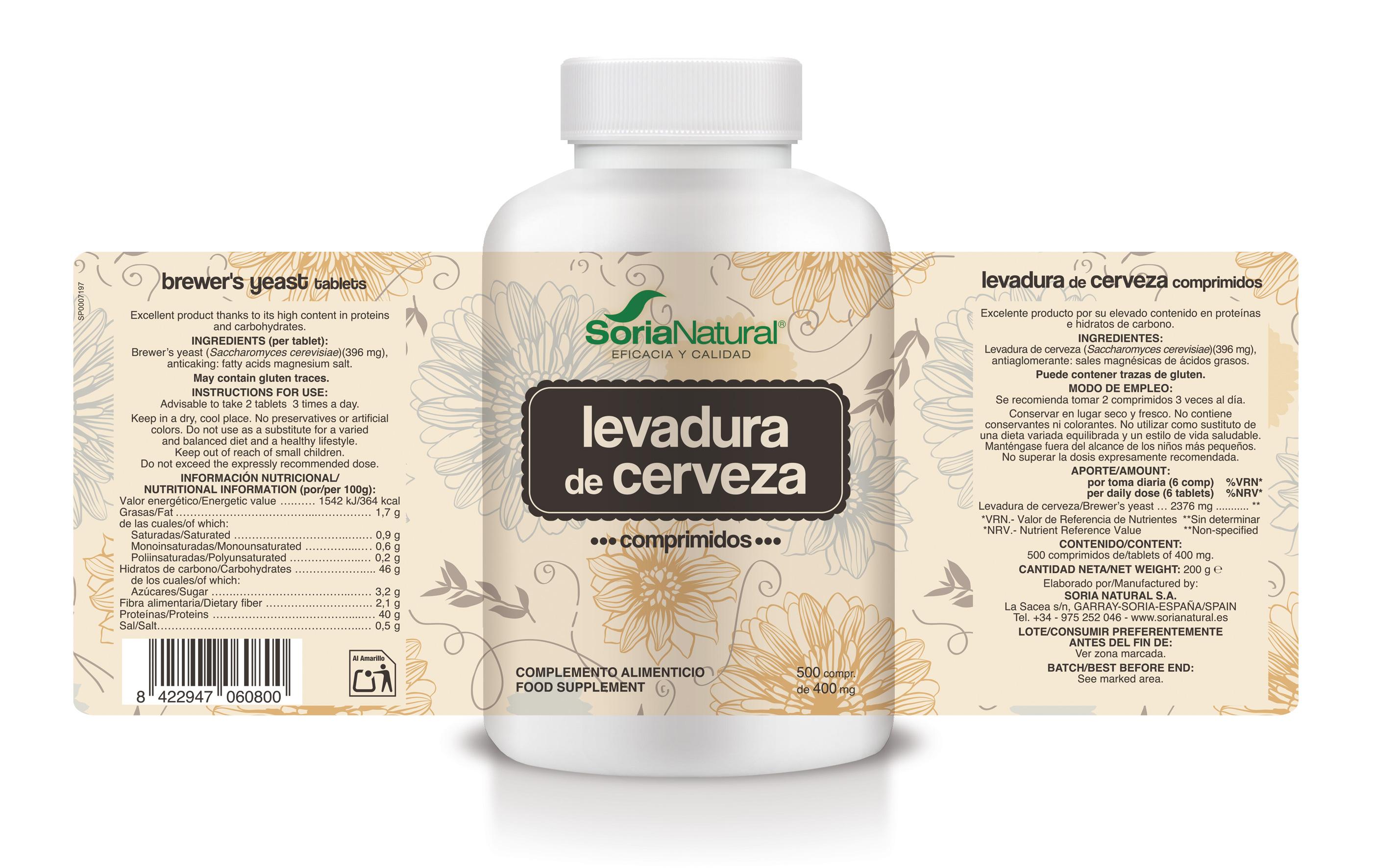 Levedura de cerveja (Saccharomyces cerevisiae) (396 mg), antiaglomerante: sais magnésicos de ácidos gordos.